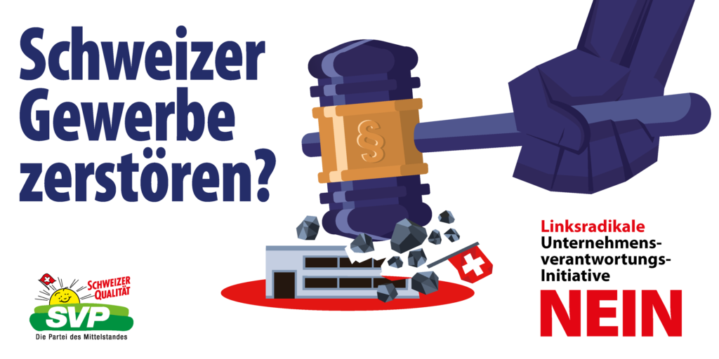 • NEIN zur Volksinitiative vom 10. Oktober 2016 «Für verantwortungsvolle Unternehmen – zum Schutz von Mensch und Umwelt»