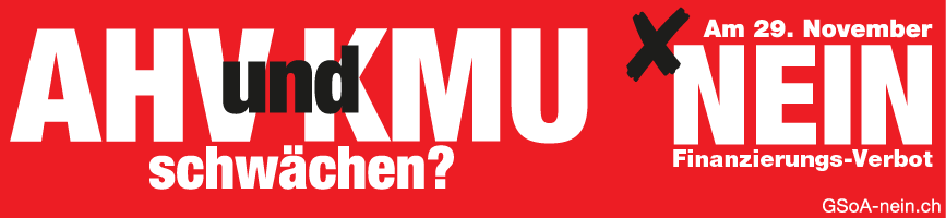 • NEIN zur Volksinitiative vom 21. Juni 2018 «Für ein Verbot der Finanzierung von Kriegsmaterialproduzenten»